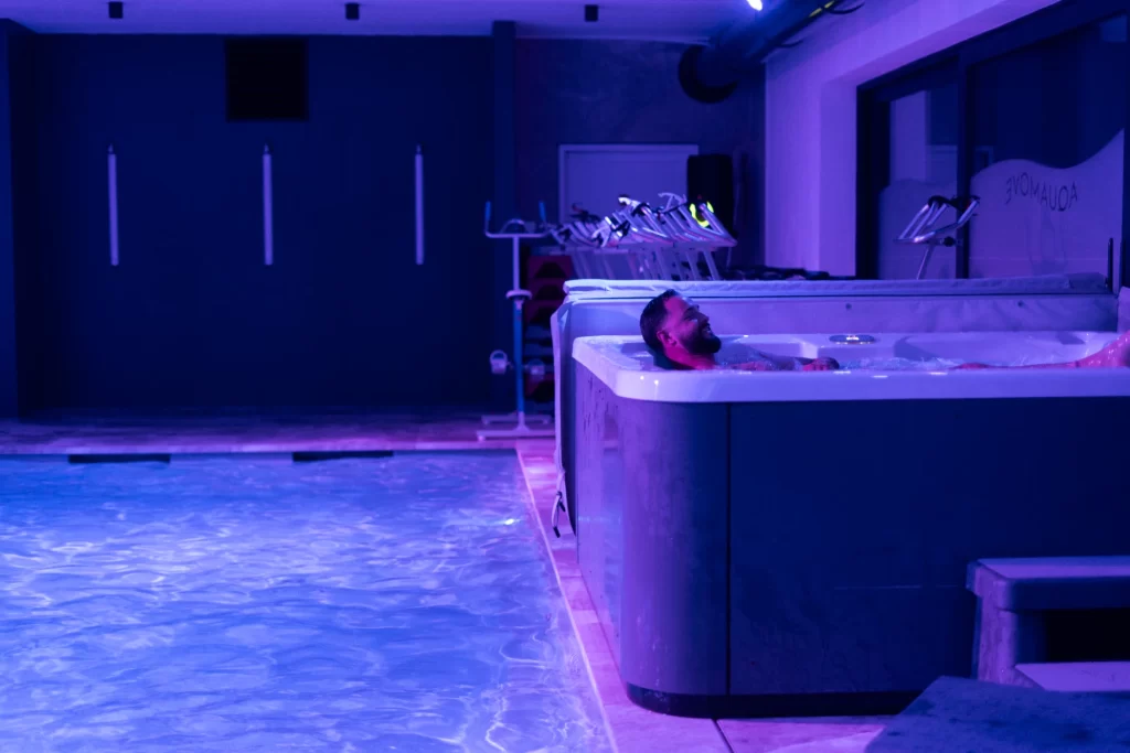 Malika et Audric sont les gérants d’Aquamove by CG Progress. Ils ont ouvert leur piscine en 2023 avec la volonté d’en faire un centre pluridisciplinaire, axé à la fois sur le sport et le bien-être. La piscine chauffée à 32° est progressivement devenue un spa avec l’ajout d’un jacuzzi, de bancs infrarouges et dernièrement d’un sauna.